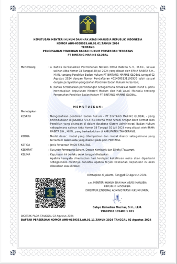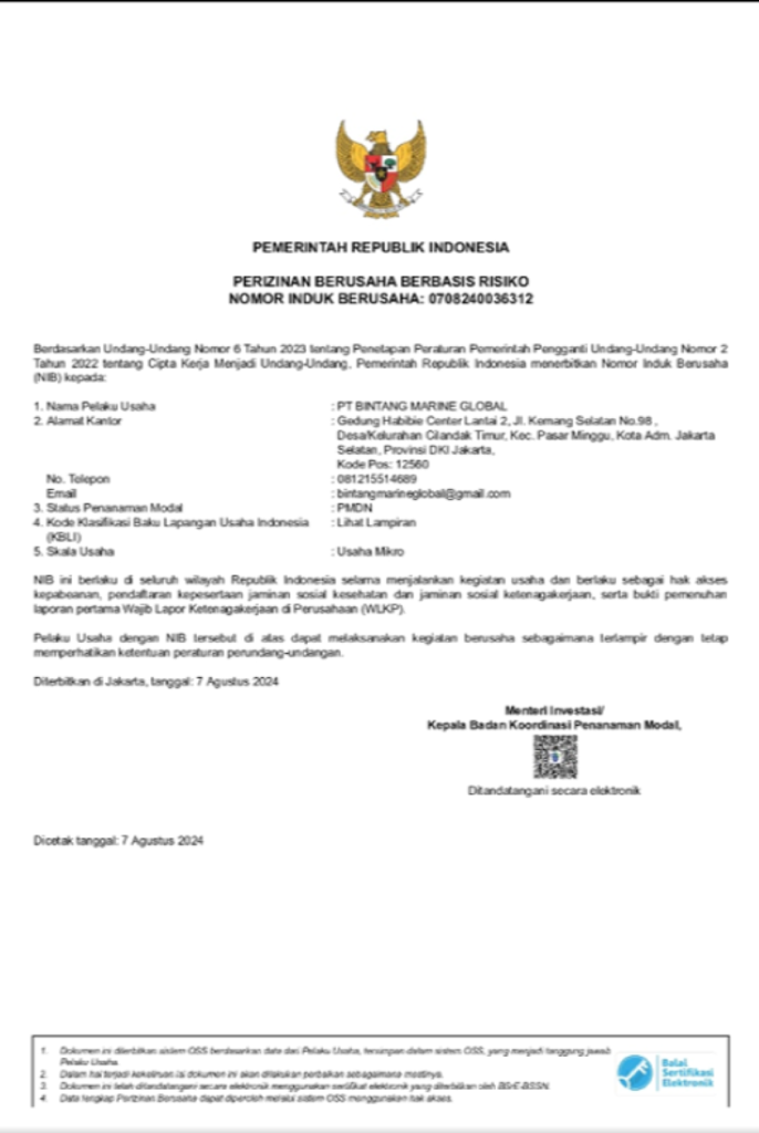 Bintang Marine Global was founded in September 2024 by Indotama Trading Piranti, a company focused on crew management for cruise ships and hotels. Led by two former professional seafarers under the responsibility of Angga Rizaldi Nasution, the company aims to simplify the recruitment process by directly engaging with ship owners or managers, reducing administrative hurdles often encountered through local agencies. With a professional and experienced management system, they are committed to providing the best service to their clients.